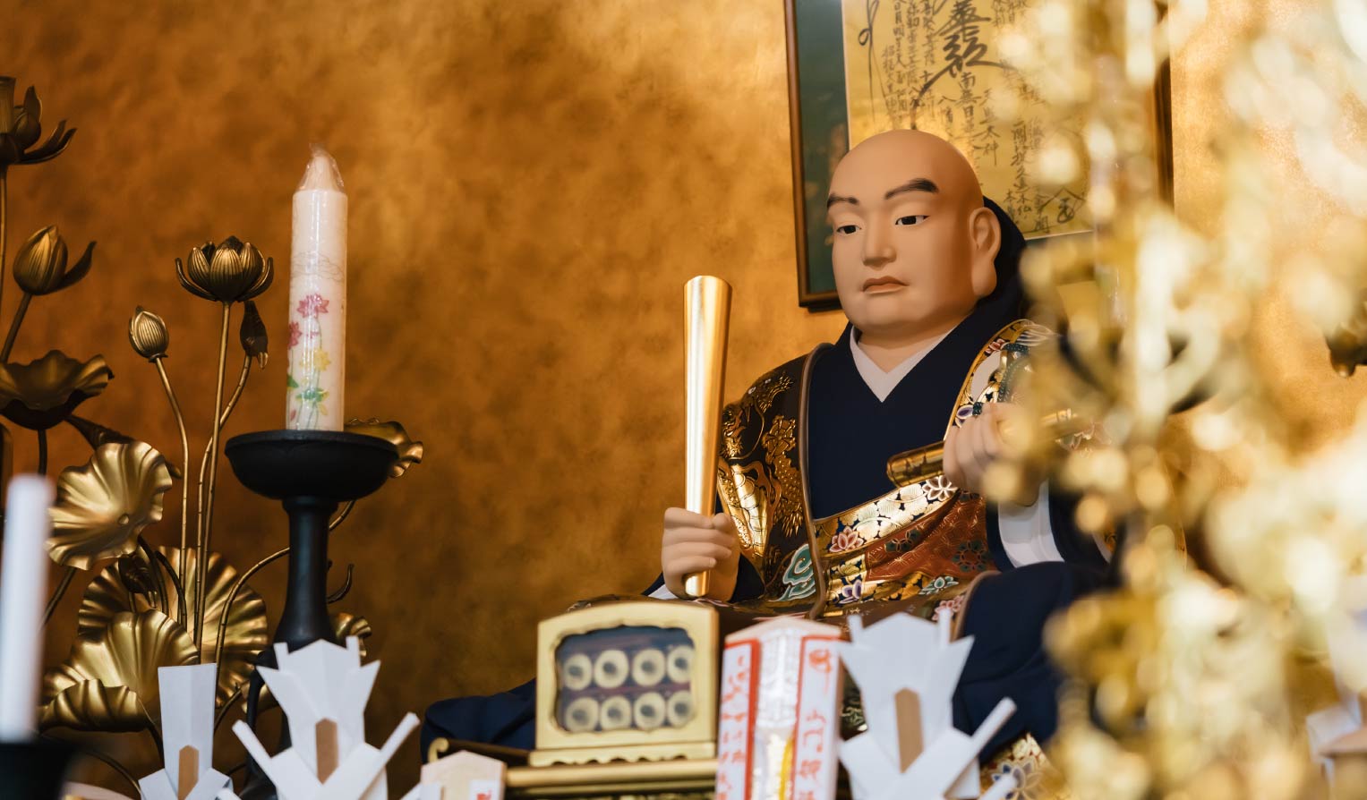 Our temple is called Gasshozan Shinjoin and is a Nichiren sect temple. Its head temple is Minobu-san Kuon-ji Temple in Minobu-cho, Yamanashi Prefecture, and it is a sub-temple with Ikozan Homyo-ji Temple as its head temple.